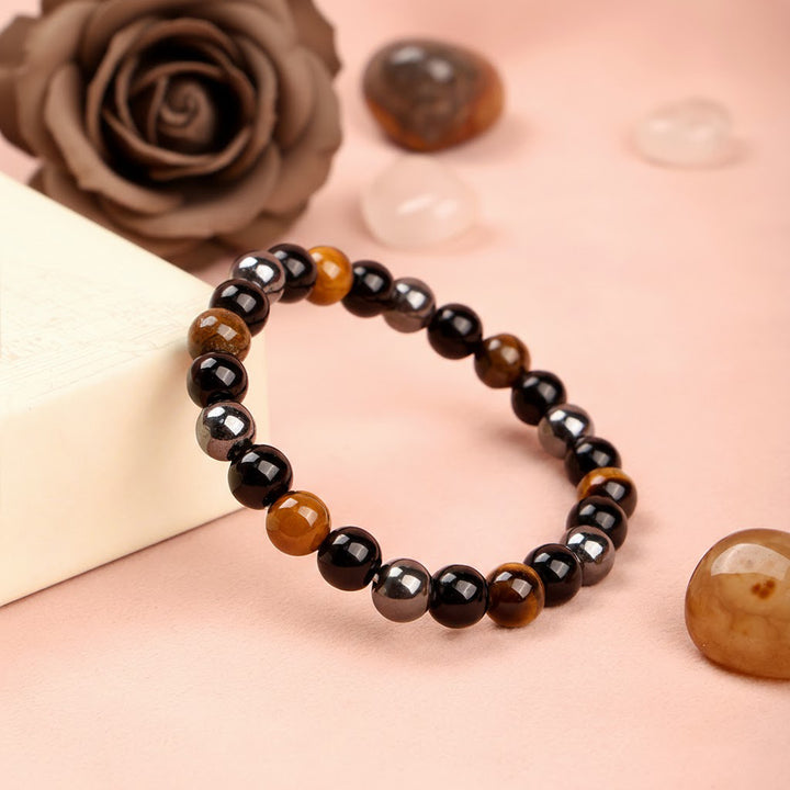 Black Tourmaline is known for absorbing negative energy and providing strong protection, Tiger’s Eye boosts courage and confidence, while Hematite provides grounding and stability. Together, these stones create a protective energy shield that helps maintain calmness, focus, and resilience in daily life.