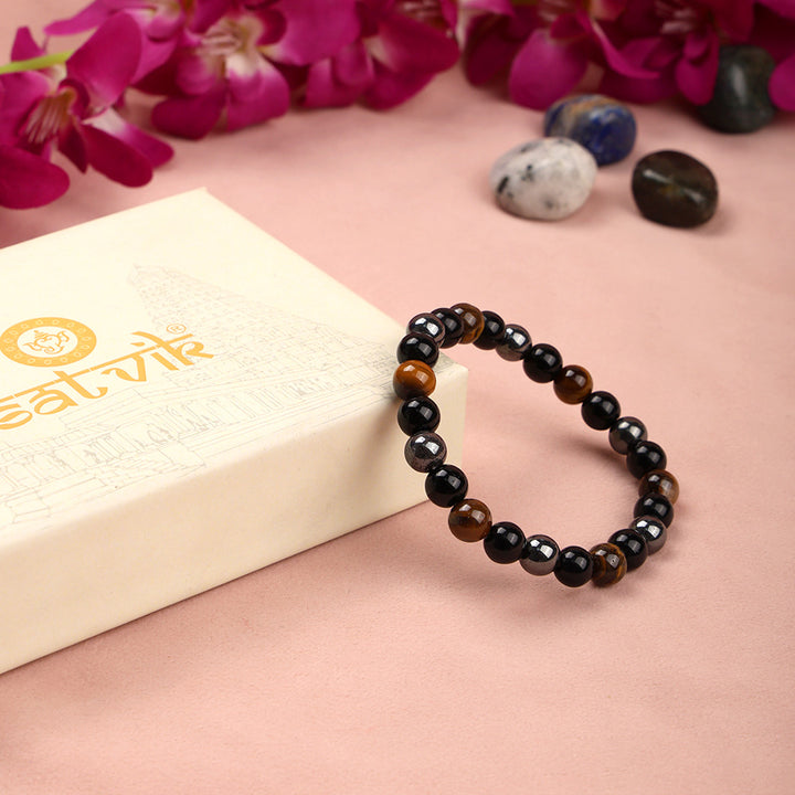 About the Product: The Tripal Protection Bracelet is a powerful healing stone accessory designed to provide strong energetic protection, grounding, and emotional stability. This bracelet is crafted using a protective combination of Black Tourmaline, Tiger’s Eye, and Hematite, each stone carefully selected for its ability to shield against negativity and strengthen inner balance.