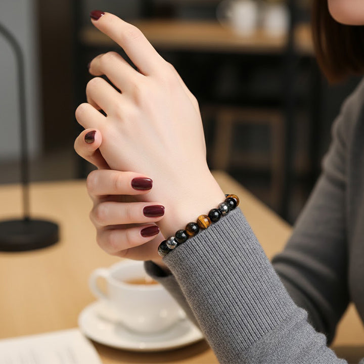 Tripal Protection Bracelet | Triple Protection Bracelet | Black Tourmaline Tiger Eye Hematite Bracelet | Protection Healing Stone Bracelet | Energy Shield Bracelet | Grounding Crystal Jewelry