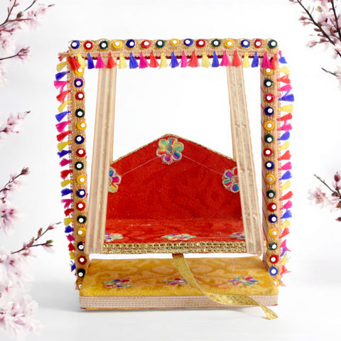 Create a majestic darbar for your Gopal Ji with our Singhasan collections and Phool Bangla backdrops. Ideal for home temples, pooja setups, and as eye-catching festive decorations.