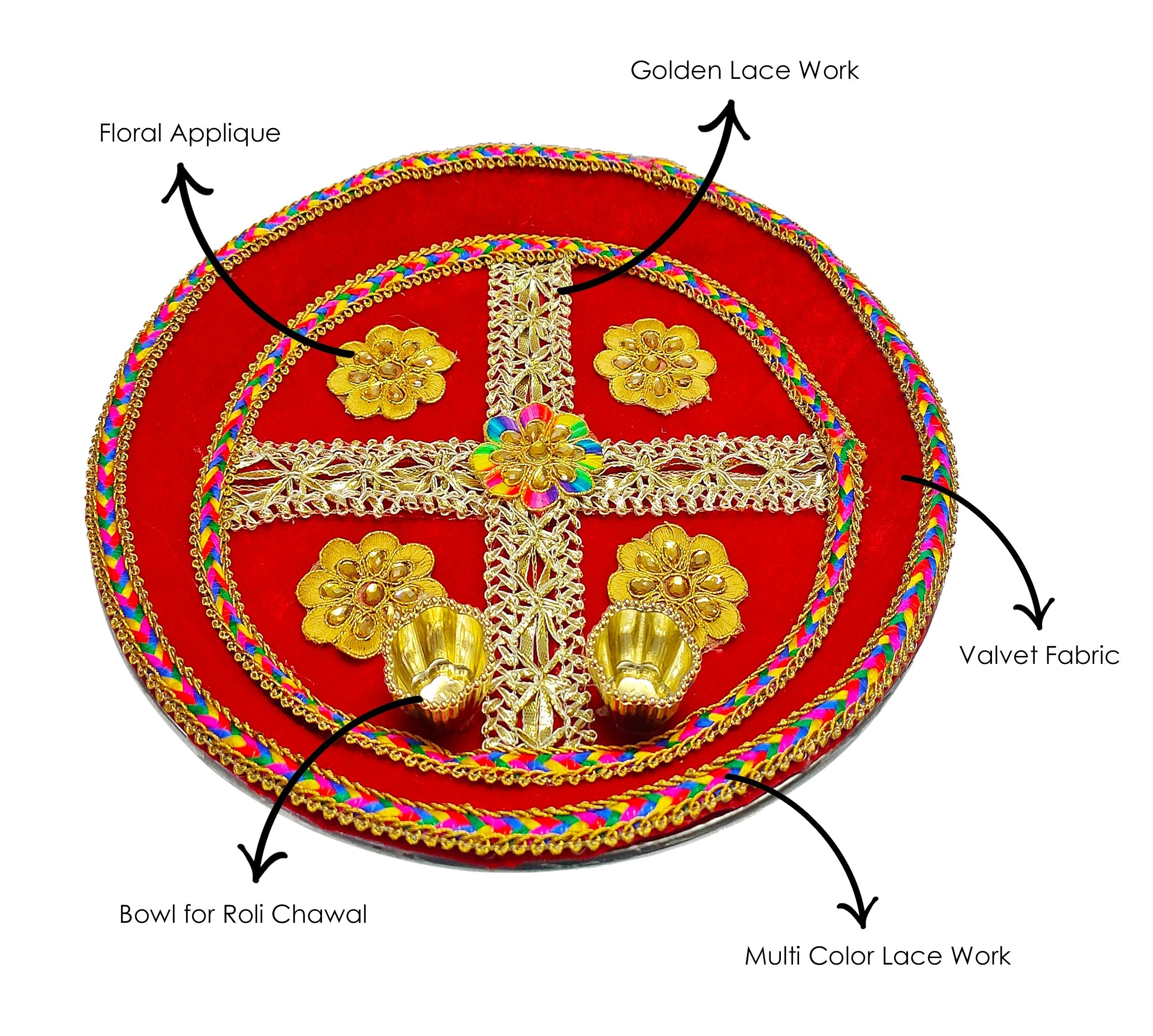 Designer Red Velvet Thali for Pooja at Best Price | Buy Online – satvikstore.in