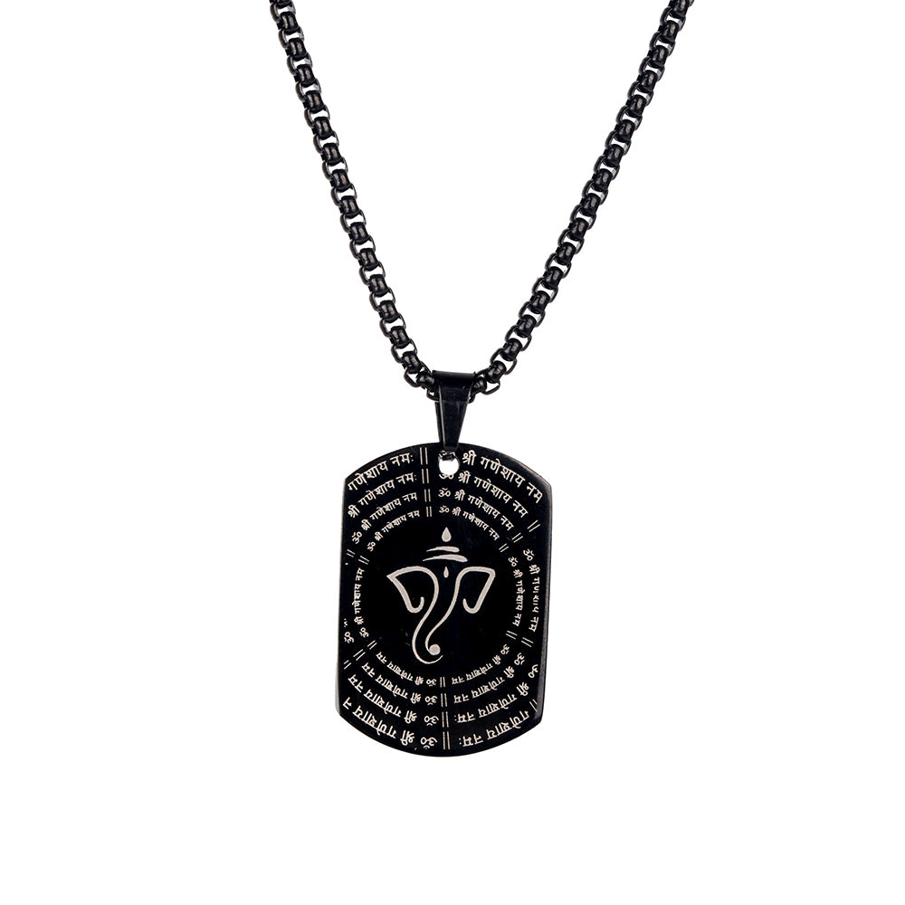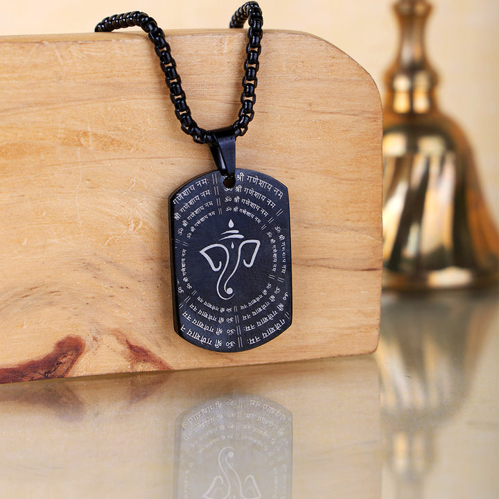 • Item Name: Ganpati Shlok MicroCarved Black Pendant