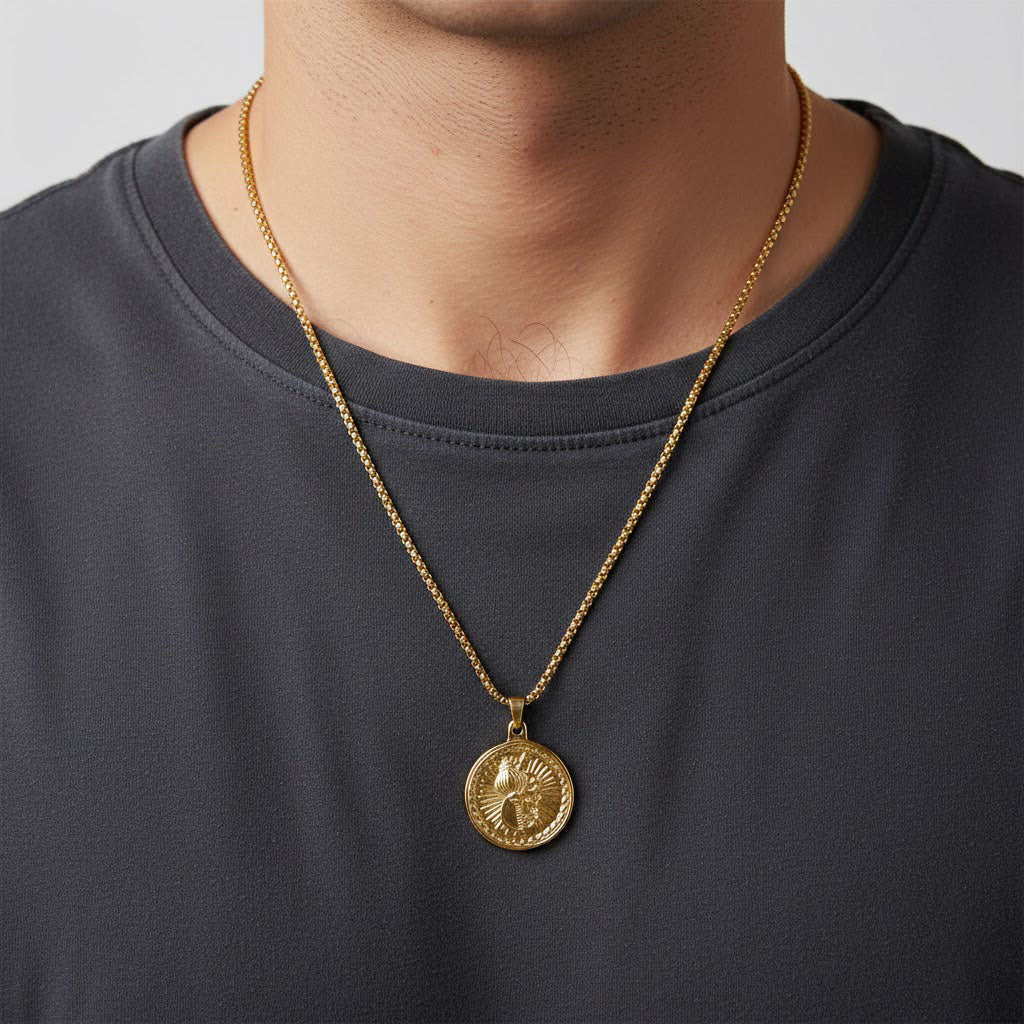 About Product: This Hanuman Ji Gada Gold Plated Pendant is a powerful symbol of strength, devotion, and protection, featuring a finely crafted representation of the Gada (Mace) of Lord Hanuman, finished with premium IGP (Ion Gold Plating) coating. The advanced IGP process enhances durability, resists tarnishing, and ensures a long-lasting radiant gold shine.