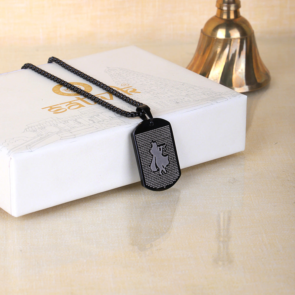 About Product: The Hare Krishna Hare Rama MicroCarved Black Pendant is a spiritually uplifting accessory featuring the sacred Hare Krishna Hare Rama Mahamantra, finely micro-carved with precision detailing on a premium black finish. This timeless mantra is known for bringing peace, devotion, and divine consciousness into the wearer’s life.
