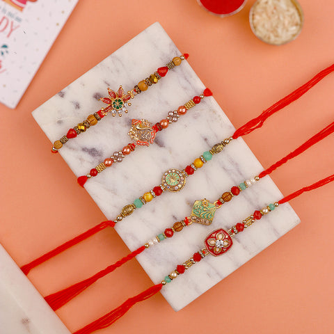 Beaded Rakhi: Adorned with intricate beads, our beaded rakhi collection exudes charm and elegance. Celebrate the joyous bond with your siblings as you tie these vibrant and delightful rakhis on their wrists.