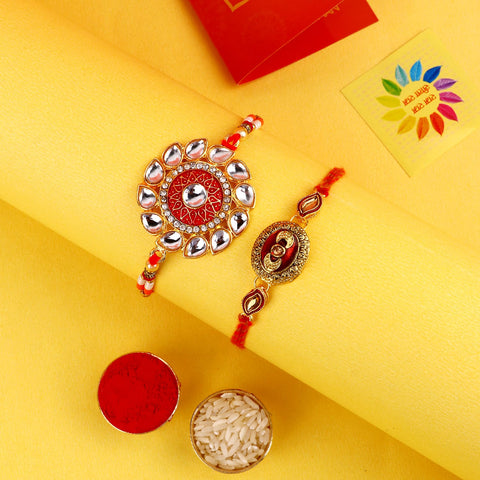 Kundan Rakhi: Bedecked with dazzling Kundan stones, our kundan rakhi collection epitomizes elegance and opulence. Celebrate the cherished moments and memories shared with your siblings.