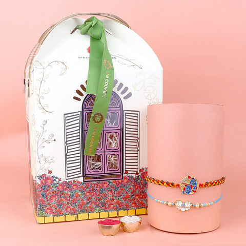 Accompanying the Rakhi is a thoughtfully curated gift hamper, designed to delight your dear Bhaiya with a selection of his favorite treats, chocolates, or thoughtful keepsakes. The hamper is carefully packed, ensuring that every element is of the finest quality and chosen with love, making it a truly heartwarming gift.