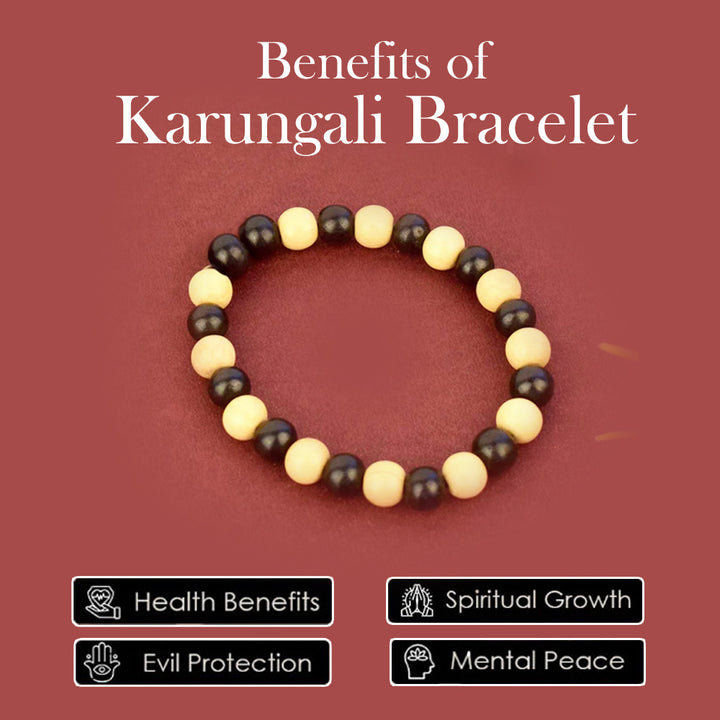 Ebony wood (Karungli) is known for its strength and protective qualities, while white sandalwood symbolizes purity, calmness, and divine connection. Together, they create a harmonious blend ideal for meditation, daily wear, or spiritual rituals.