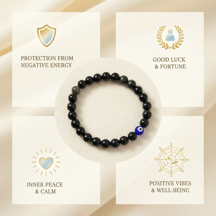 Black Obsidian Evil Eye Bracelet – 8 mm
