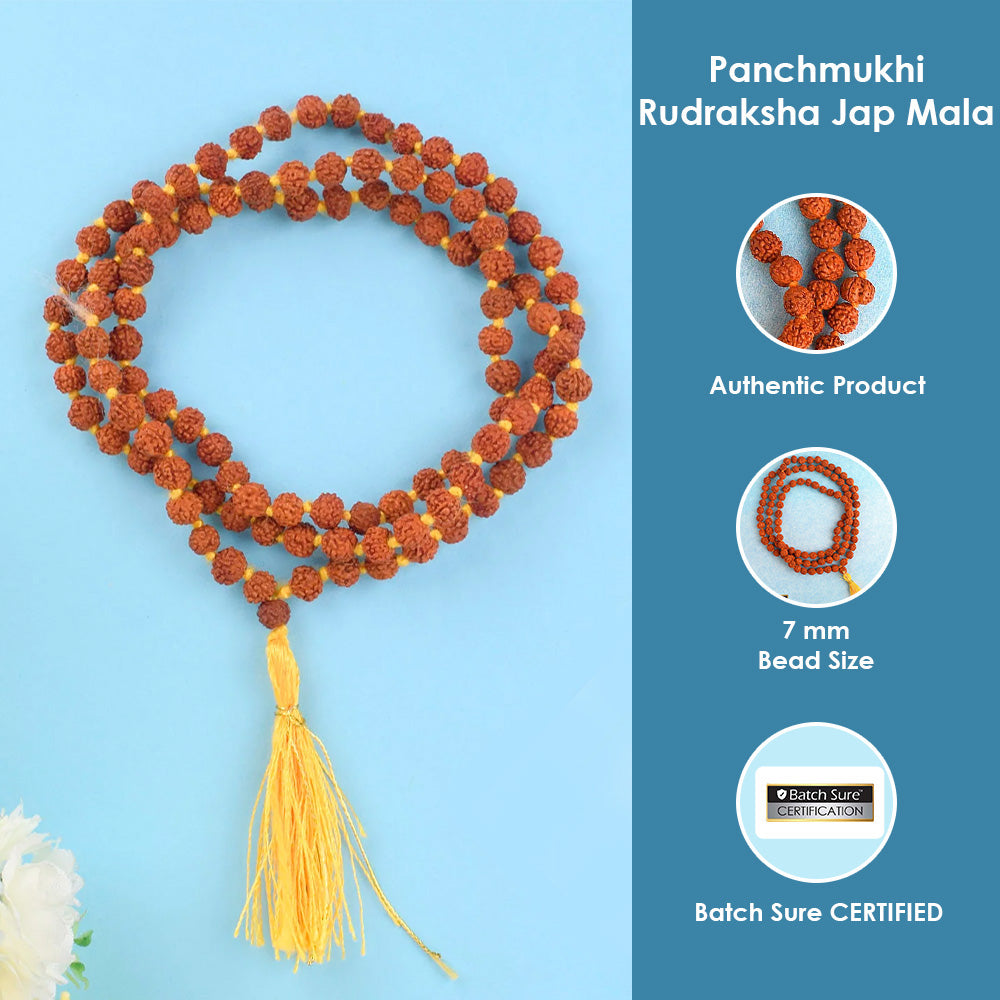 - Made from genuine 5-faced Rudraksha (Panchmukhi)